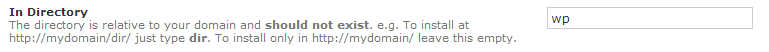 In Directory adalah folder tujuan untuk installasi CMS, bila disana diisi missal wp anda akan mengakses wordpress dengan namadomain.com/wp , namun kami sarankan untuk in directory dikosongkan agar website bisa diakses cukup dengan namadomain.com.